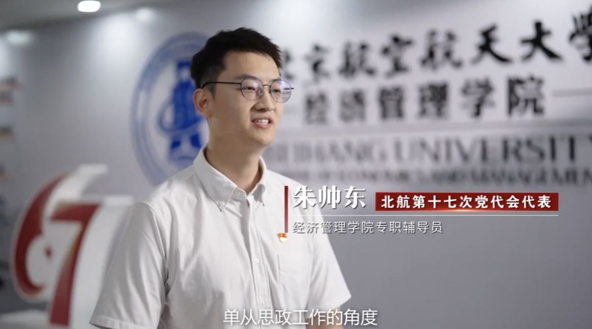 北航第十七次党代会代表 经济管理学院专职辅导员 朱帅东:全面支撑学校高质量的人才培养,全心全意为学生服务。